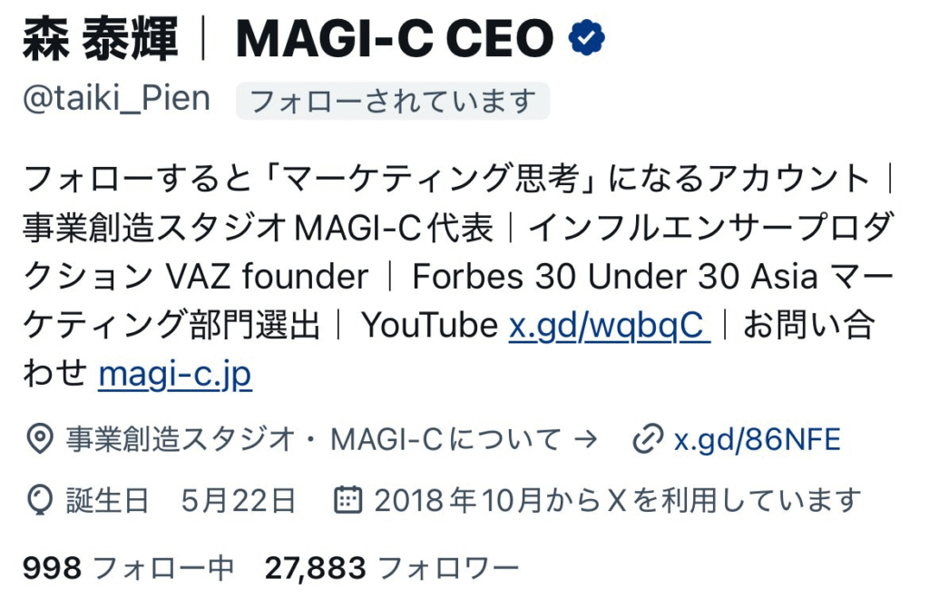 これに加えて、「何を発信しているか」を簡潔に添えるのは有効ですが、詳細に書き込みすぎる必要はありません。実際、弊社の運用では①企業名と②理念 を基軸とし、「発信内容」は投稿の蓄積やフォロワー数の増加によって自然に伝わるよう設計しています。