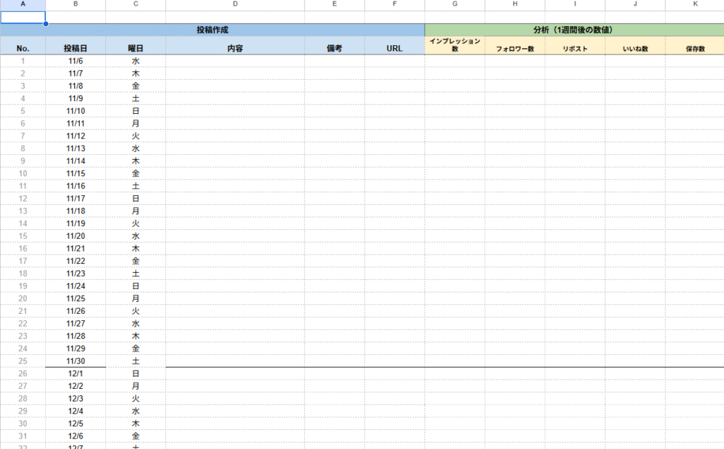 弊社ではこれらを毎月必ず振り返り、どの投稿が反応を得やすかったのか、なぜその投稿が刺さったのかをチームで分析しています。単なる数値の確認で終わらせず、要因を言語化することで「伸びる投稿の再現性」を高め、アカウント全体の成長に直結させています。