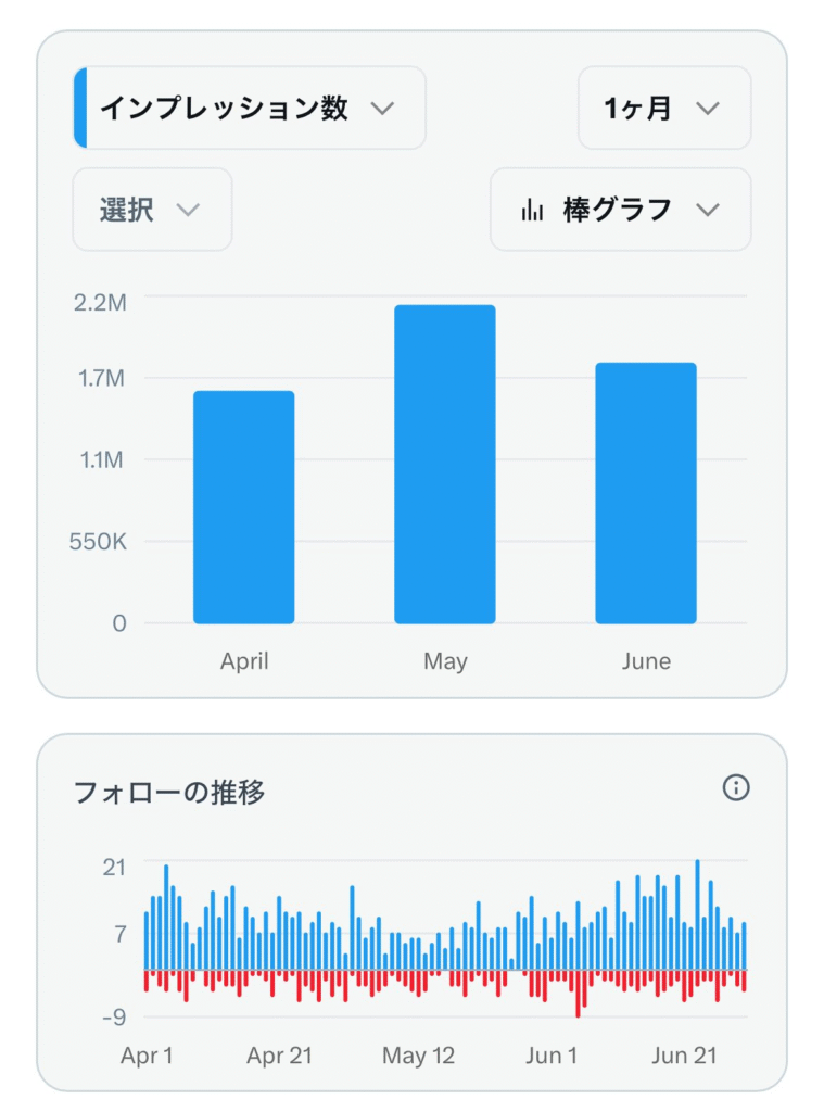 たとえばインプレッションが急増したのにフォロワーが増えていなければ、「表示はされたがプロフィールに魅力がなかった」という仮説が立ちます。逆にフォロワー増加と連動している場合は、投稿内容や切り口が「フォローする価値がある」と判断された証拠です。