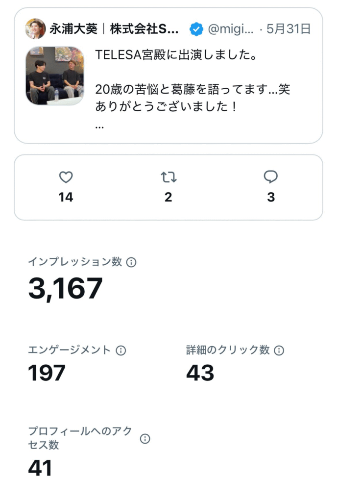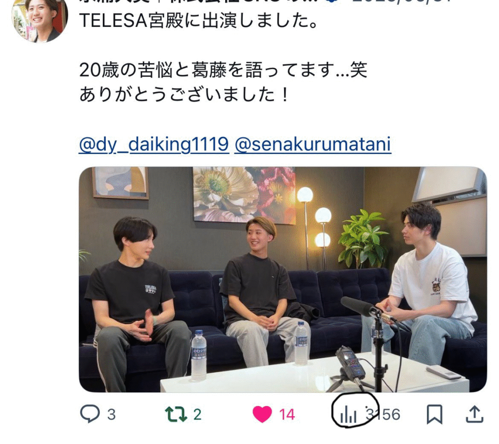 個別ポストのアナリティクスでは、どの投稿がどのくらい反応を得たかを詳細に確認できます。