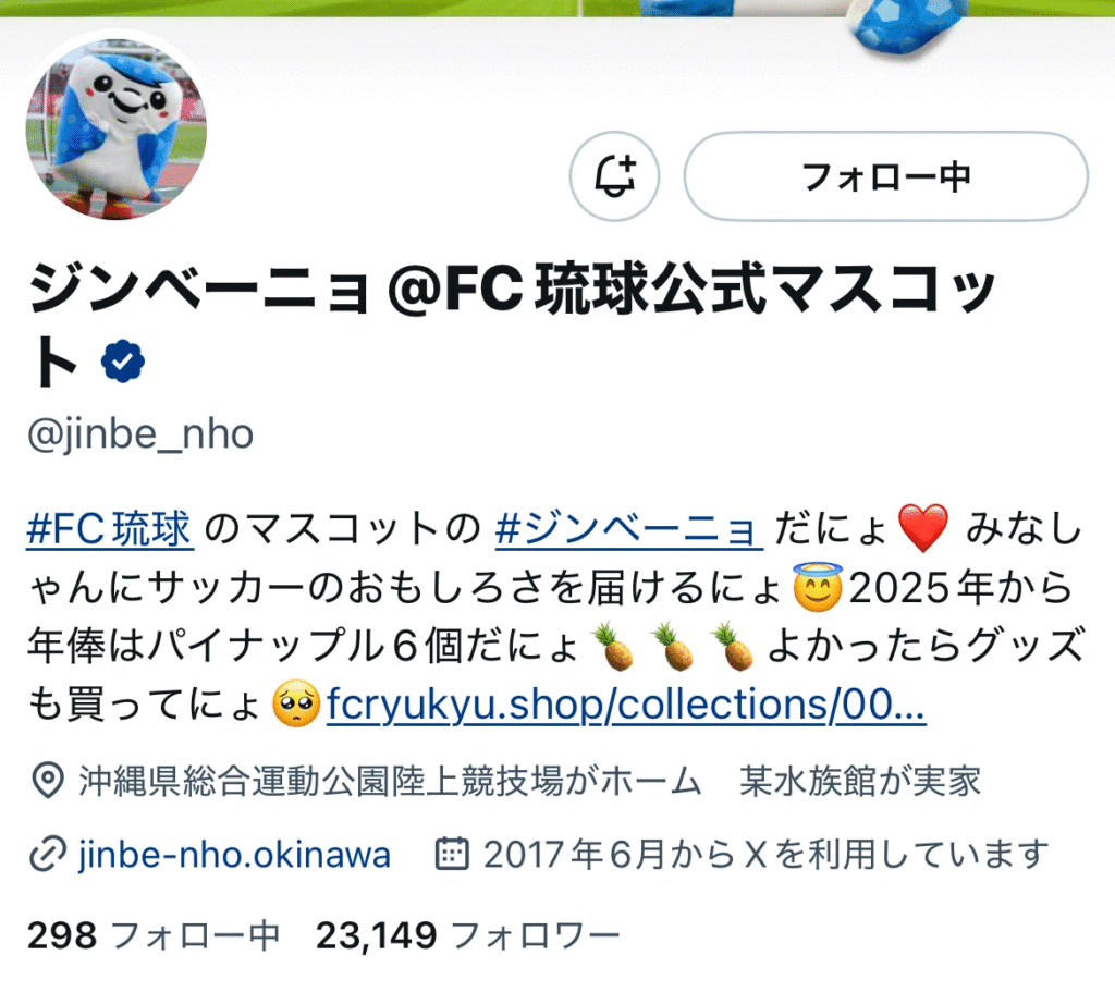 ご存じの方もいるかもしれませんが、サッカーJ3リーグのFC琉球が運営する「マスコットキャラクターのアカウント」は非常に示唆的です。