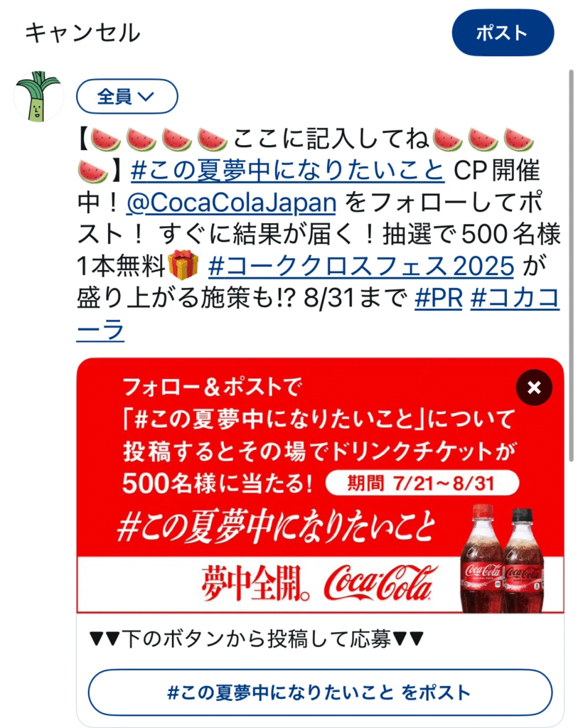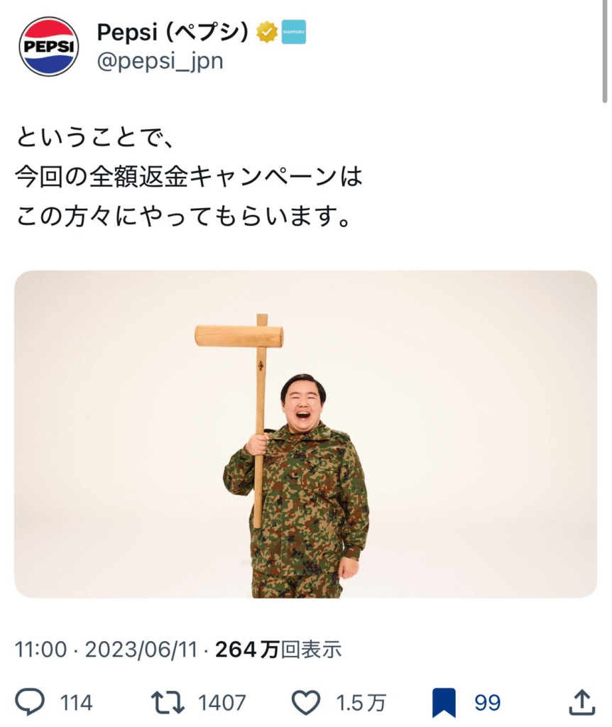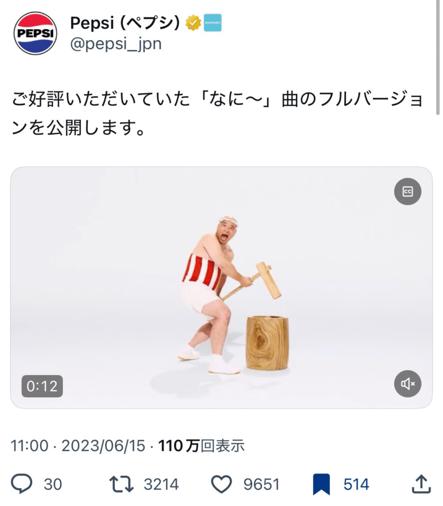 企業のX活用において、一般的には1,000万インプレッションを獲得できれば成功とされる中、このペプシ施策はその約10倍、1億インプレッションを達成。SNS販促の事例としても極めて稀少かつ示唆に富むケースです。