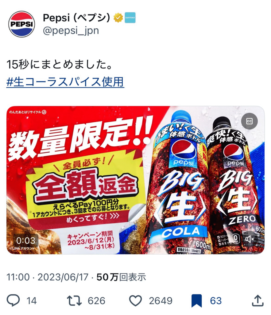 単に「面白い」で終わらせるのではなく、“誰に届けるか”を明確に意識した設計。ペプシの投稿群が、なぜ異例の規模感まで伸びたのかが、この一手にも表れています。